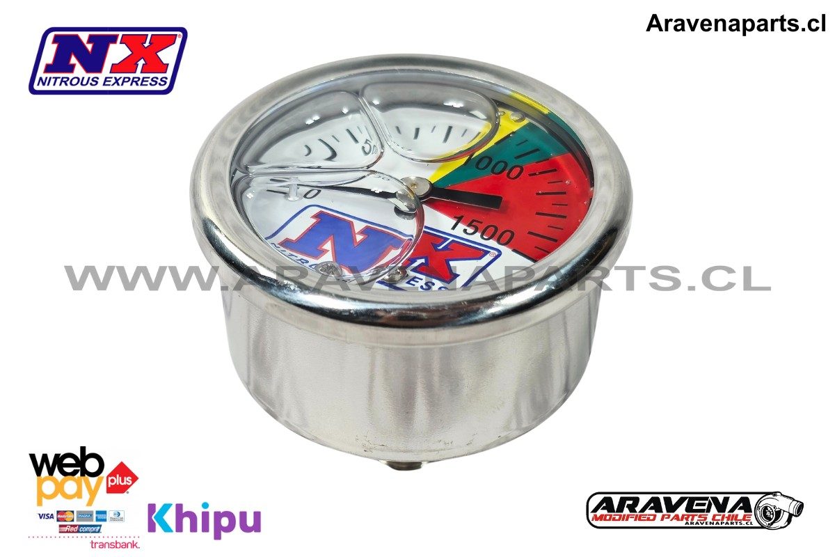 El manómetro Nitrous Express ofrece mediciones exactas de 0 a 1500 psi, con construcción rellena de líquido y diseño 2-1/16″ que combina rendimiento y durabilidad.